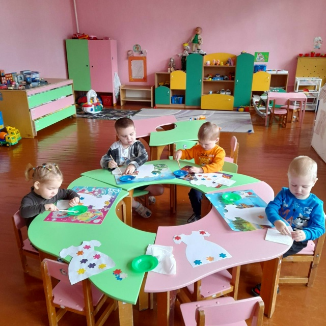 Неделя толерантности. Аппликация по теме «Красим цветами платье куклы Даши»
