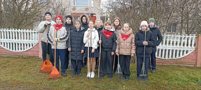 13 ноября 2025 года волонтеры и активисты БРСМ ГУО «Красненская средняя школа Кореличского района» оказали помощь учителю Красковской О. А., вышедшей на заслуженный отдых. Ребята убрали опавшие листья, очистили двор от сухой растительности.